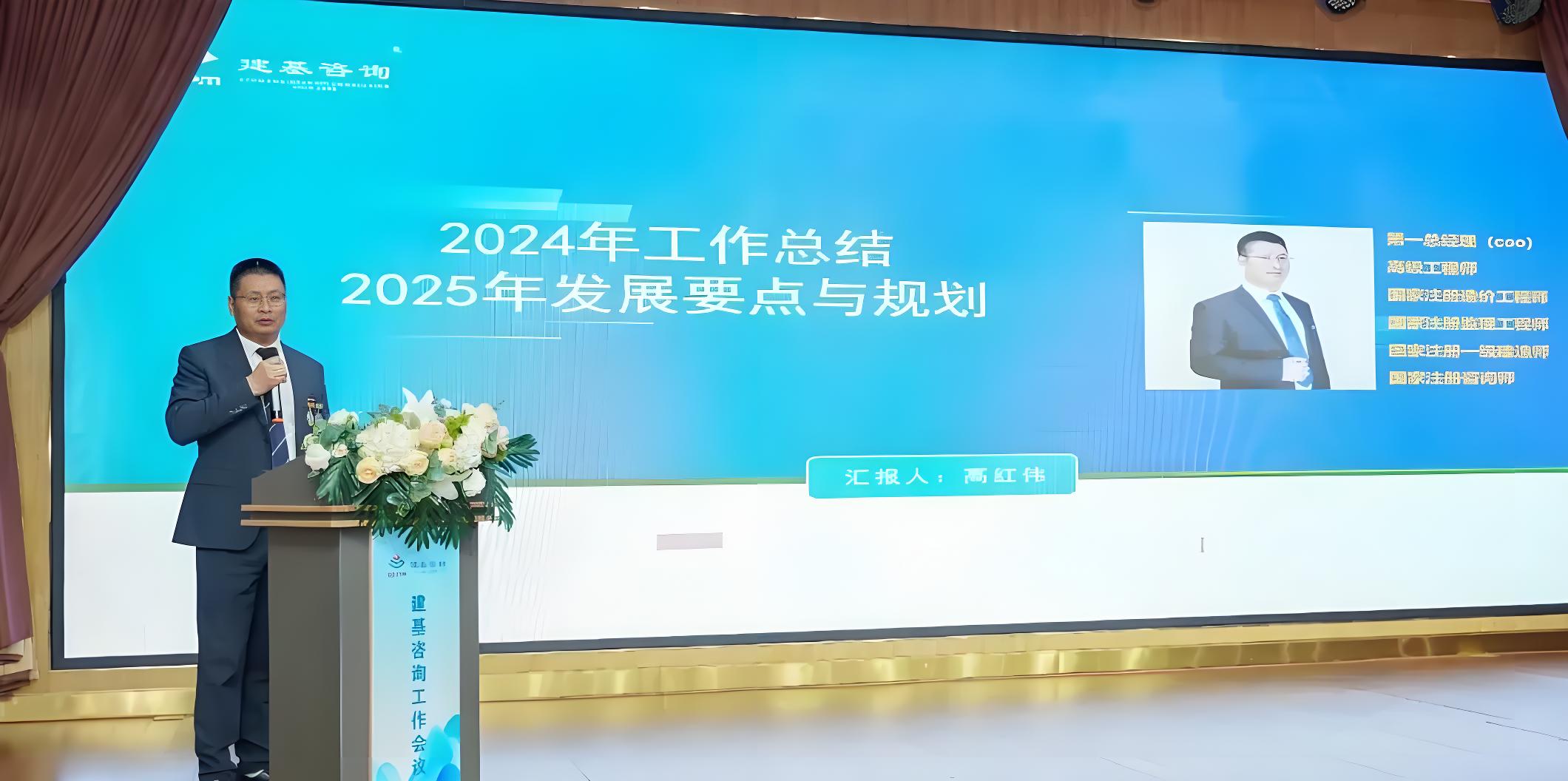 會議在激昂的《建基之歌》中拉開帷幕。全體與會人員通過《2024年建基咨詢大事記》視頻,系統(tǒng)回顧了公司2024年在各業(yè)務(wù)板塊、技術(shù)創(chuàng)新、數(shù)字化轉(zhuǎn)型、行業(yè)榮譽(yù)等領(lǐng)域取得的突破性進(jìn)展,直觀呈現(xiàn)了年度核心成果與戰(zhàn)略實(shí)踐。
