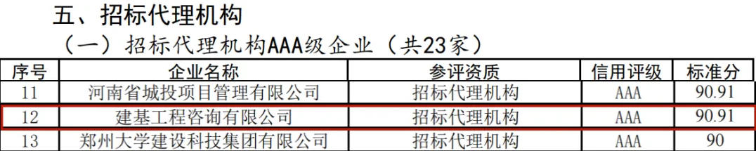 近日,鄭州市城鄉建設局發布了《關于發布2024年度鄭州市建筑企業信用評價結果的通告》,公司榮獲勘察設計AAA級企業、招標代理機構AAA級企業等榮譽。