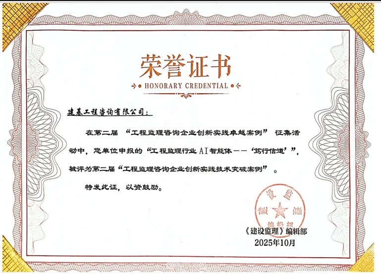 此次獲獎(jiǎng)是行業(yè)對(duì)公司技術(shù)創(chuàng)新的肯定,更是對(duì)未來(lái)發(fā)展的鞭策。下一步,公司將繼續(xù)深化“篤行信道”AI智能體的研發(fā)應(yīng)用,探索集成項(xiàng)目數(shù)字化交付等先進(jìn)技術(shù)與監(jiān)理業(yè)務(wù)的融合,為推動(dòng)監(jiān)理行業(yè)高質(zhì)量發(fā)展貢獻(xiàn)更多創(chuàng)新力量。