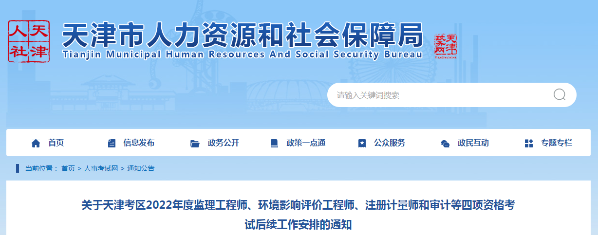 關于天津考區2022年度監理工程師、環境影響評價工程師、
